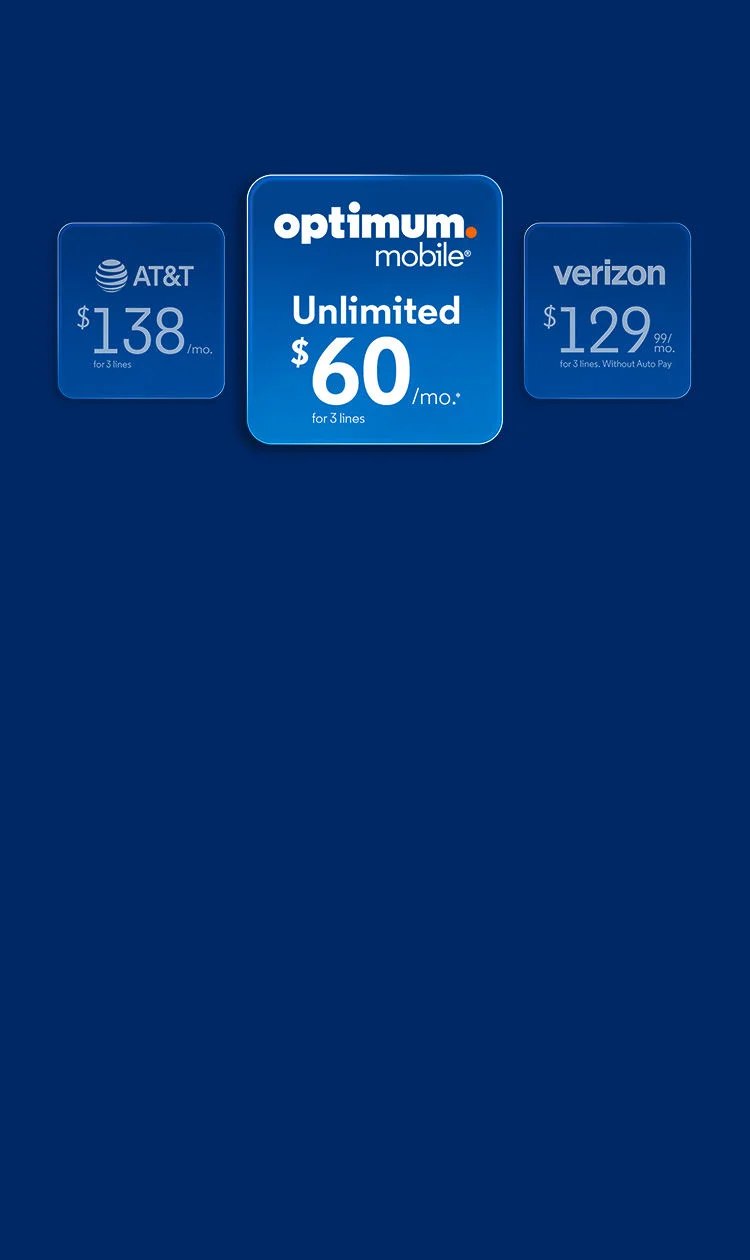 Choose from the latest Apple, Samsung and motorola phones. Save every month on Internet when you switch to Optimum Mobile. Plus, get your 3rd line free!